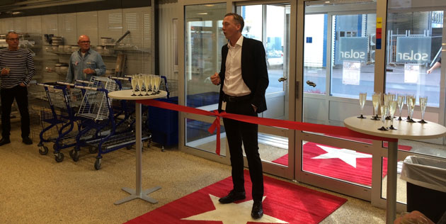 Solars vd Anders Koppel klipper bandet för att öppna Solars nya butik i Växjö